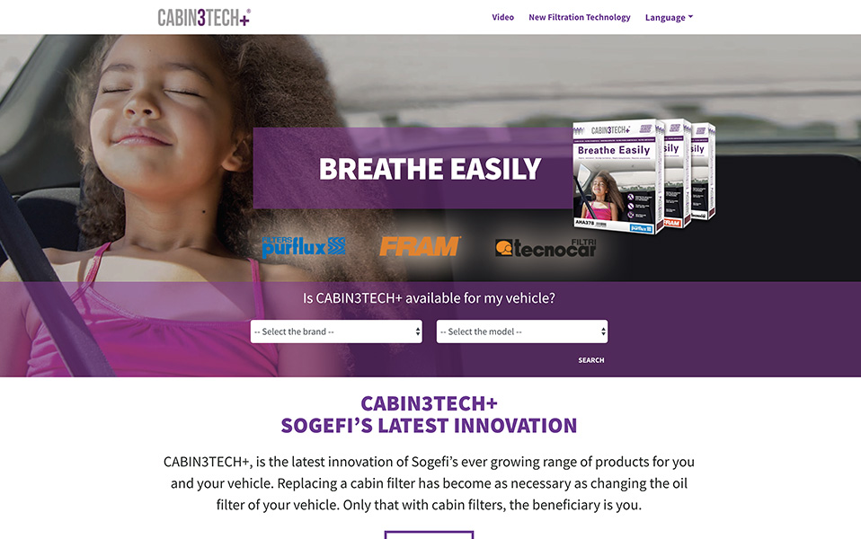 CABIN3TECH+Engitel ha progettato e realizzazione il sito web dedicato al nuovo filtro per abitacolo CABIN3TECH+ del Gruppo Sogefi.
