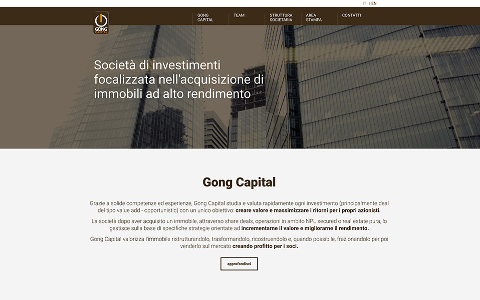 Gong CapitalEngitel ha realizzato il sito web di Gong Capital: società di investimenti focalizzata nell’acquisizione di immobili ad alto rendimento.