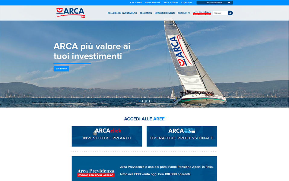 Arca Fondi SGREngitel ha realizzato il progetto di restyling del sito istituzionale di Arca Fondi SGR, una delle principali realtà nel campo del risparmio gestito in Italia.