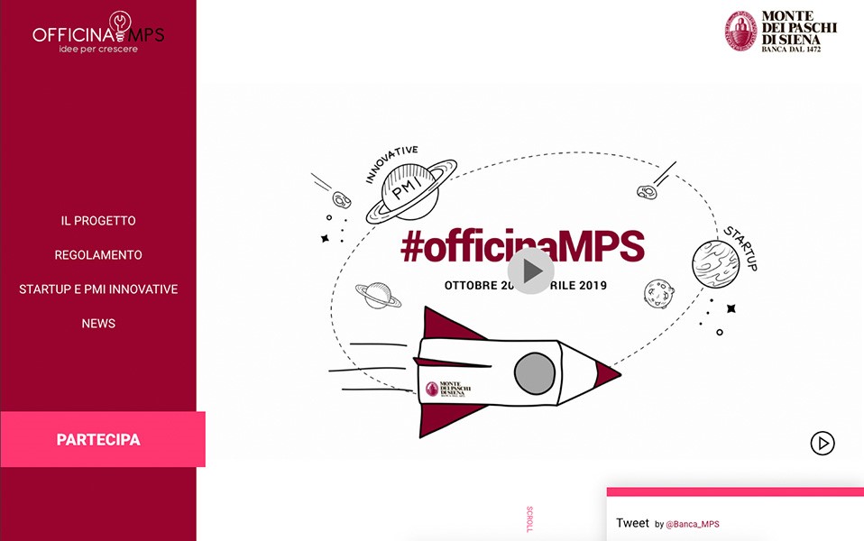 Officina MPS – Video promozionale ConcorsoL’iniziativa di MPS che si rivolge alle “Startup e PMI innovative” si promuove anche con un video dedicato.