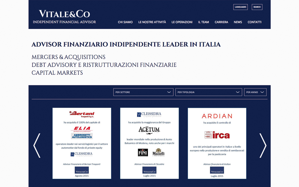 Vitale&CoCon 14 anni di attività, Vitale&Co è oggi una società leader in Italia per gestione di complesse operazioni di finanza straordinaria.