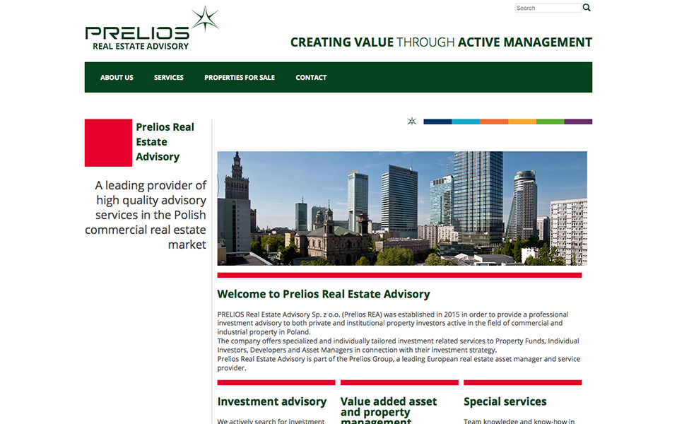 Prelios Real Estate Agency - sito webEngitel ha realizzato il nuovo sito di Prelios Real Estate Agency, società polacca del gruppo Prelios, costituita nel 2015 per fornire un servizio di consulenza professionale ad investitori privati e corporate.