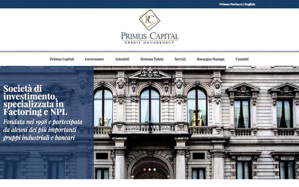 Primus Capital - Sito Web Primus Capital S.p.A. è una società di investimento che opera principalmente nelle aree di business Pluricaptive Factoring, Special Situations e Non Performing Loans. È il secondo servicer NPL in Italia per attivi, capitale sociale e...