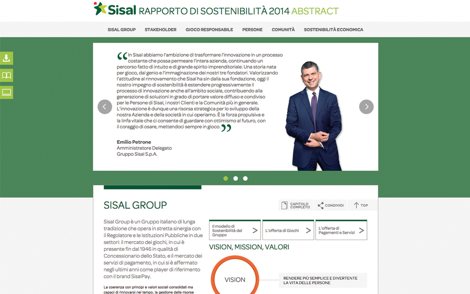 Sisal - Rapporto di SostenibilitàSisal e Engitel ancora insieme per il Rapporto di Sostenibilità 2014