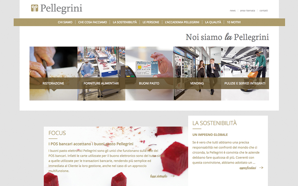 Restyling sito - Gruppo PellegriniLa Pellegrini, fondata nel 1965, è un’azienda che oggi conta 6.000 collaboratori, cinque settori di fornitura di servizi e una straordinaria vocazione all’innovazione.