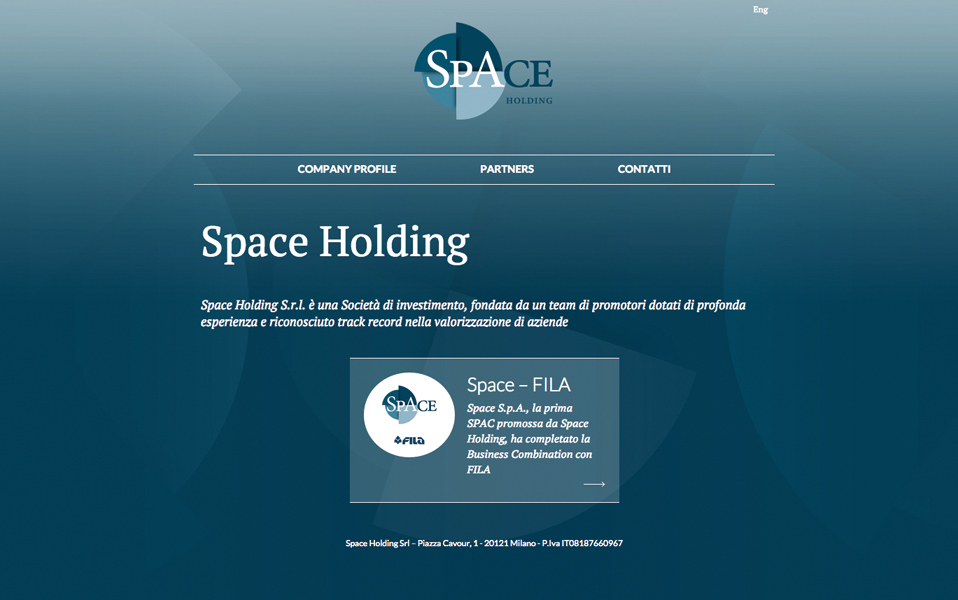 Space HoldingIl sito presenta una linea grafica sobria ed elegante, contenuti sempre aggiornati, grande visibilità agli investimenti e alle operazioni effettuate e in corso.