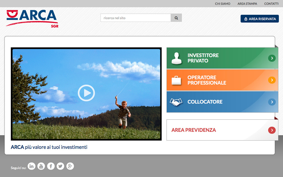 ARCA SGRUn nuovo sito, più funzionale e moderno. Con un flusso di informazioni e la possibilità di accedere in qualsiasi momento al proprio portafogli. È il progetto realizzato da Engitel per Arca SGR.