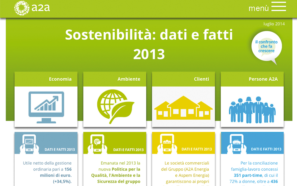 A2A Sintesi Bilancio SostenibilitàGrazie a Spin&Go, sistema di content management proprietario, Engitel ha realizzato il sito dedicato all’abstrac del Bilancio di Sostenibilità di A2A.