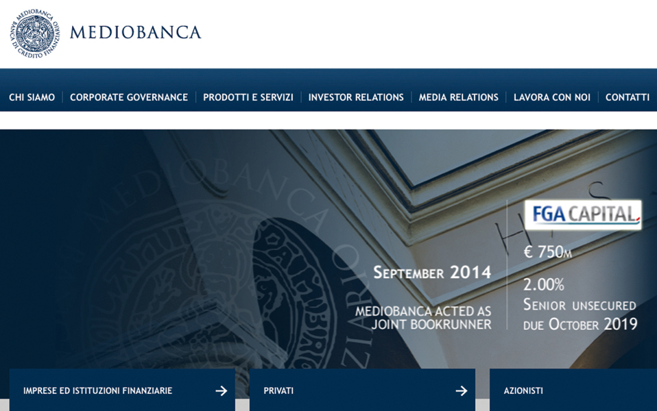 Mediobanca - Restyling 2014È online il nuovo sito internet di Mediobanca, rinnovato nel look e nelle funzionalità.