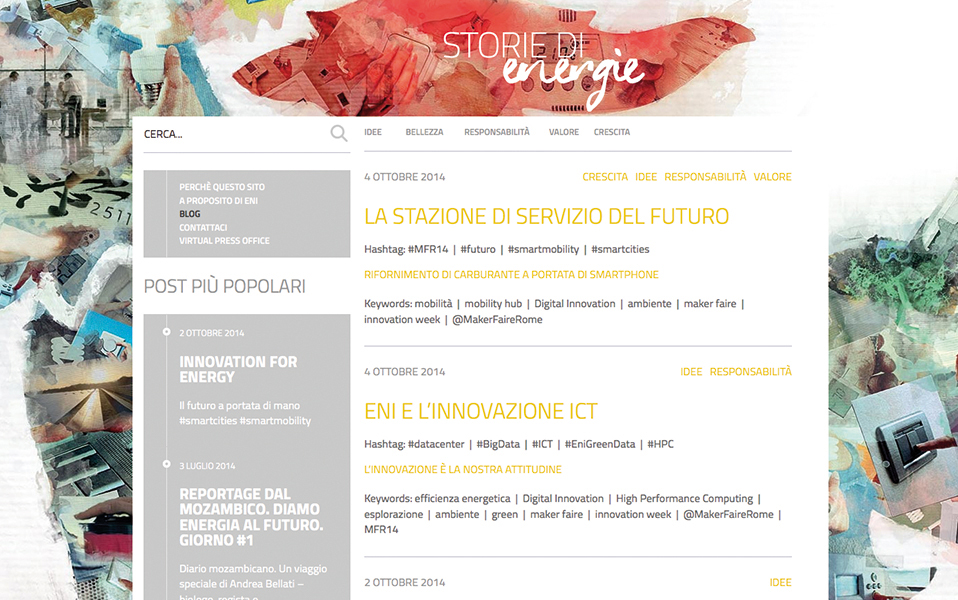 Storie di energie (Eni)Engitel ha realizzato per Eni il sito Storie di energie, uno spazio per parlare del presente e del futuro delle diverse forme di energia.