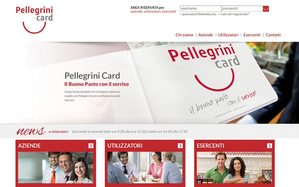 PELLEGRINICARDRestyling e re-engineering del sito PELLEGRINICARD, dedicato alla Divisione Buoni Pasto della Pellegrini spa, leader nella ristorazione aziendale.