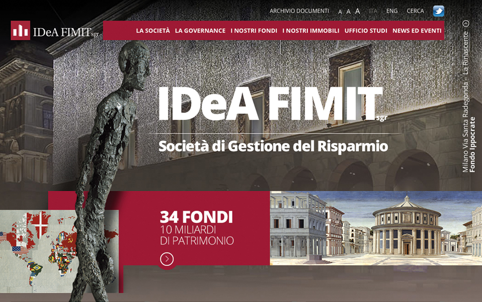 IDeA FIMITIDeA FIMIT sgr, società di gestione del risparmio specializzata in fondi di investimento immobiliare ha scelto Engitel per il restyling e il re-engineering del sito web corporate e dei siti dei fondi.