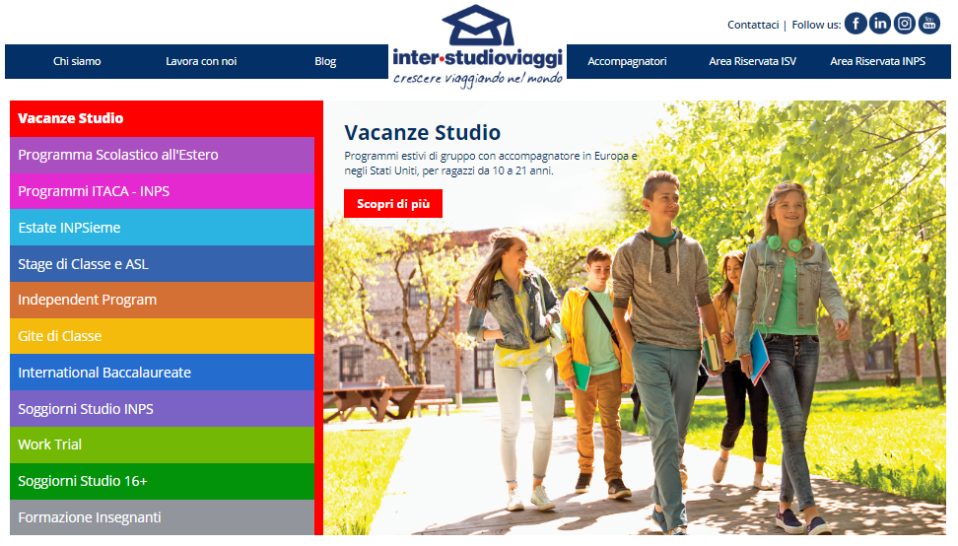 Inter-studioviaggi S.p.A.Inter-studioviaggi è un operatore specializzato con esperienza ultratrentennale nella realizzazione di programmi scolastici e linguistici per studenti di ogni fascia d’età.