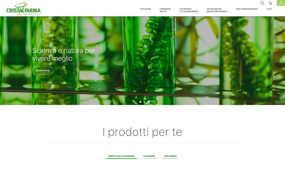 Cristalfarma Restyling 2022Cristalfarma, società appartenente al Gruppo Mediolanum, specializzata in fitoterapia, si è nuovamente affidata a Engitel per il restyling 2022 del sito corporate.