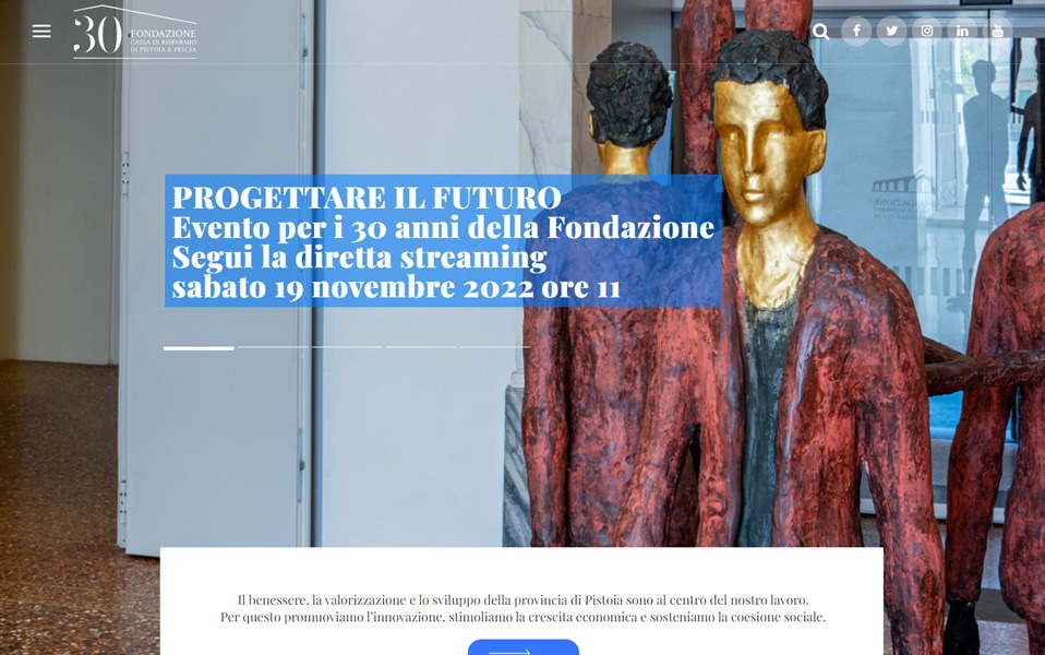 Fondazione Caript Fondazione Caript è un ente privato no profit che da trent’anni opera per il benessere, la valorizzazione e lo sviluppo economico della provincia di Pistoia.