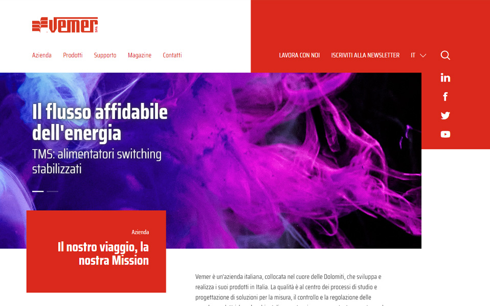 VemerEngitel ha realizzato il nuovo sito di Vemer S.p.A., azienda affermata sul mercato elettrico per la progettazione di soluzioni e strumentazioni elettriche per il settore civile e industriale.