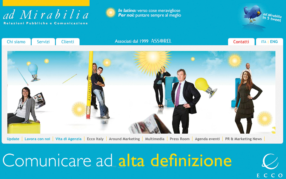 AD MIRABILIAEngitel ha realizzato il nuovo sito web di AD MIRABILIA, agenzia milanese di relazioni pubbliche e comunicazione d’impresa specializzata nella corporate, product e marketing communication fondata nel 1990 da Lorenza Bassetti.