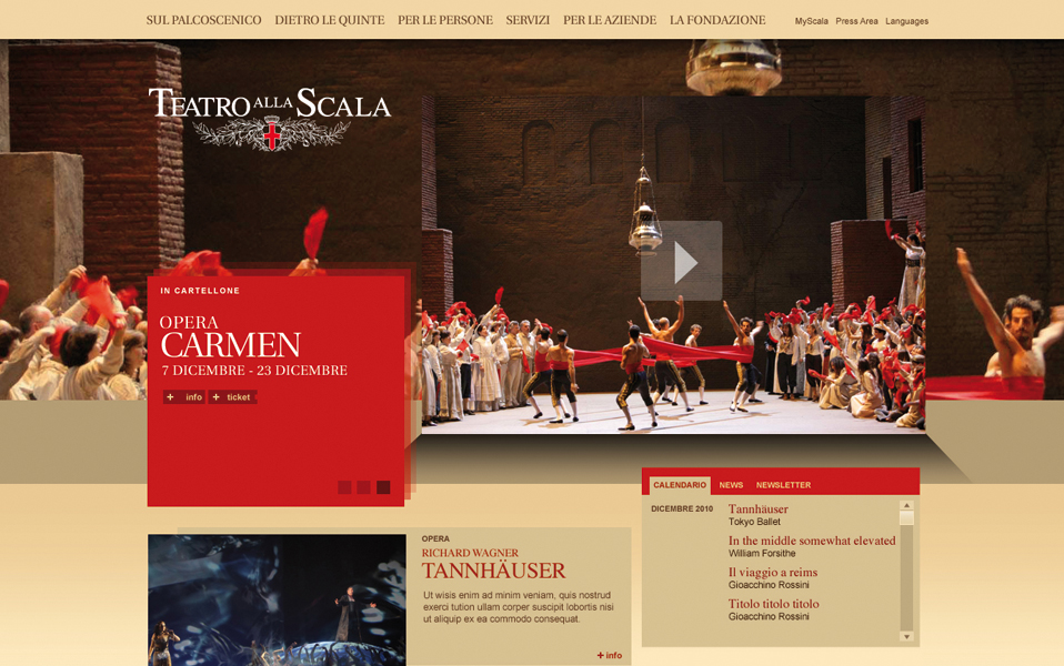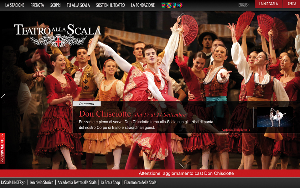 Teatro Alla ScalaIl sito del prestigioso teatro italiano è stato nuovamente ristrutturato da Engitel nel 2010, dopo la prima release già realizzata nel 2006.