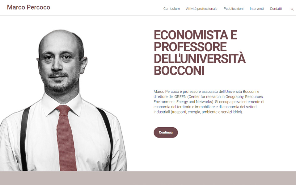 Marco PercocoL’economista e professore dell’Università Bocconi Marco Percoco si è rivolto a Engitel per la progettazione e la creazione del suo sito web personale.