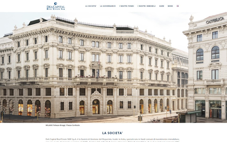 DeA Capital Real Estate SGR S.p.A.DeA Capital Real Estate SGR S.p.A. è la Società di Gestione del Risparmio, leader in Italia, specializzata in fondi comuni di investimento immobiliare, con una quota di mercato superiore al 22,5%.