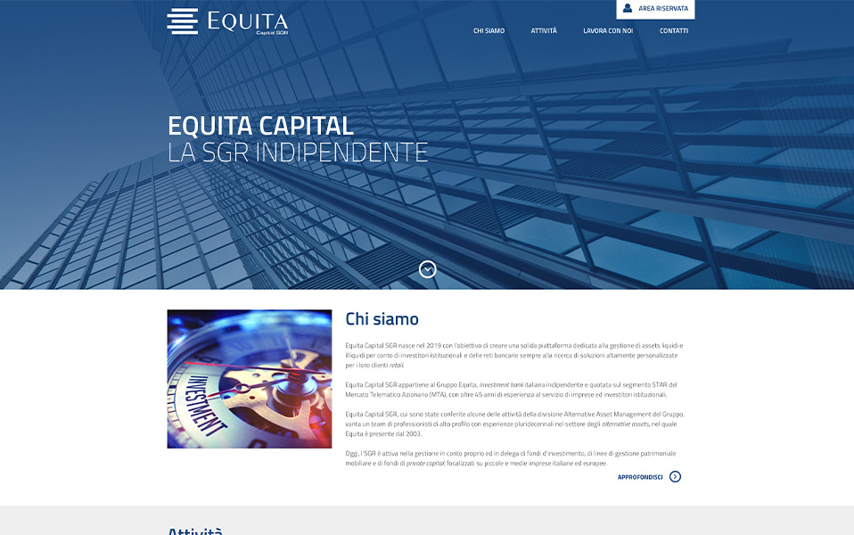 Equita Capital SGREquita Capital SGR si affida ad Engitel per la realizzazione del suo primo sito corporate dedicato agli investitori istituzionali e a reti bancarie alla ricerca di soluzioni personalizzate.