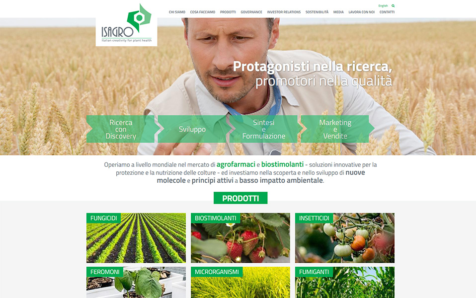 ISAGRO - Restyling Homepage 2019Isagro, multinazionale italiana che opera nel mercato degli agrofarmaci, si affida anche nel 2019 a Engitel per la sua presenza sul web.