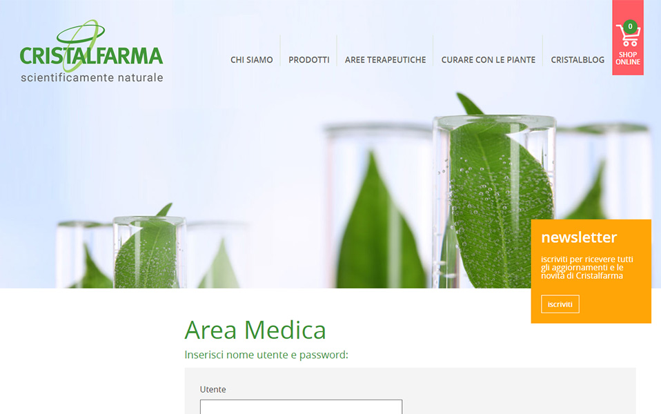 Cristalfarma - Area RiservataCristalfarma, società appartenente al Gruppo Mediolanum, specializzata in ricerca, produzione e vendita di prodotti fitoterapici ha affidato a Engitel la creazione di un'area riservata per i medici.