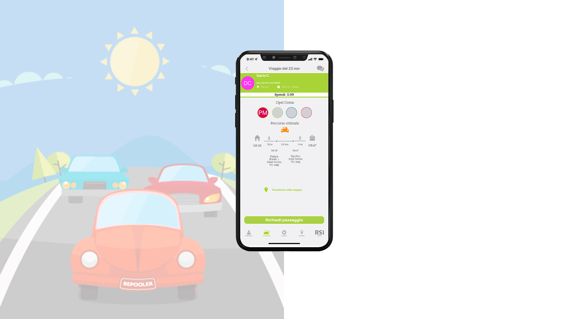 The app is the most comprehensive technology solution to date for travel management: from route sharing, to parking reservation, to driver expense reimbursement. The platform, developed with great attention to the UX, is not only a sophisticated trip-sharing tool, but also a tool for incentive distribution and support of corporate welfare and social responsibility.