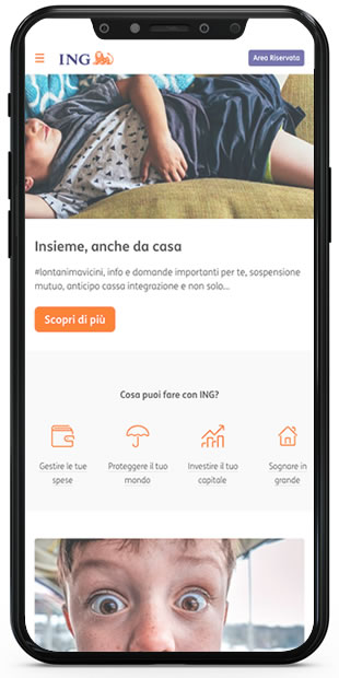 The collaboration between Engitel and ING begins in 2011, with the management of the product landing pages and the editorial management of the public area of the website www.ingdirect.it, also via Spin&Go©. Spin&Go© was also used for the website www.ing.it. Subsequently, Engitel took care of redesigning the public website as well as implementing responsive restyling.