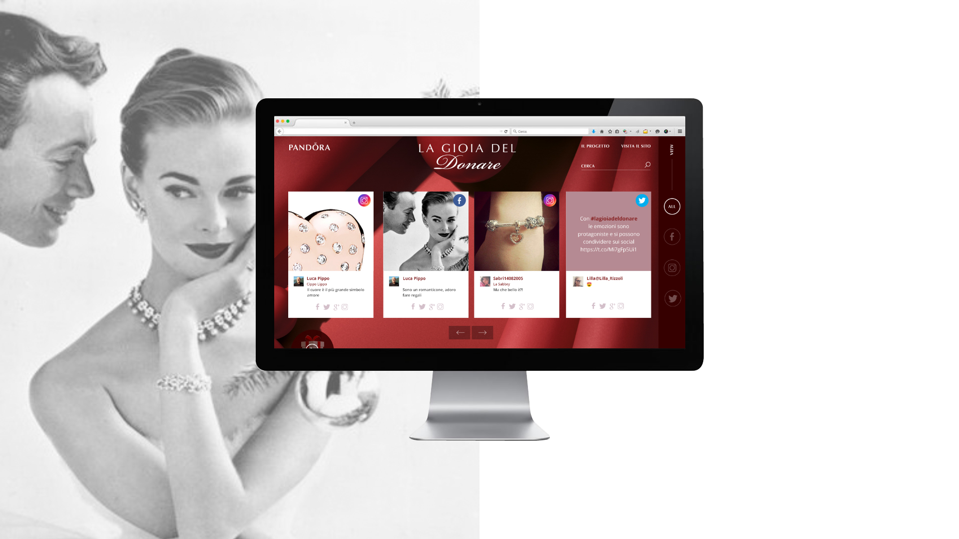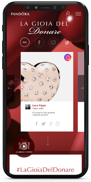 The work of Engitel has therefore allowed Pandora to recover all the posts that were published online, moderating them in real time and making it possible to create a social media wall that would integrate the social networks with the physical event on the website "The joy of giving"