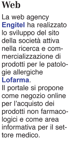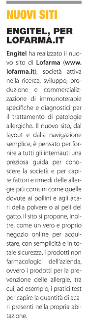 27/03/2008La web agency Engitel ha realizzato lo sviluppo del sito della società attiva nella ricerca e commercializzazione di prodotti per le patologie allergichePubblico Today