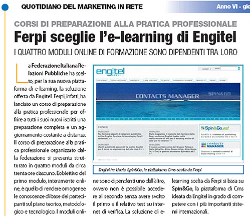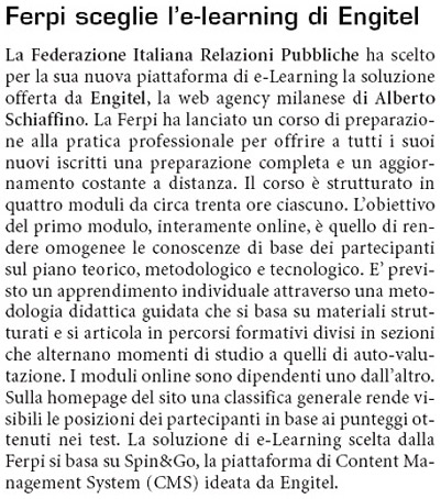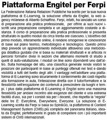 11/05/2007Ferpi, Federazione delle agenzie di rp, ha scelto per la nuova piattaforma di e-learning la web agency EngitelPubblico