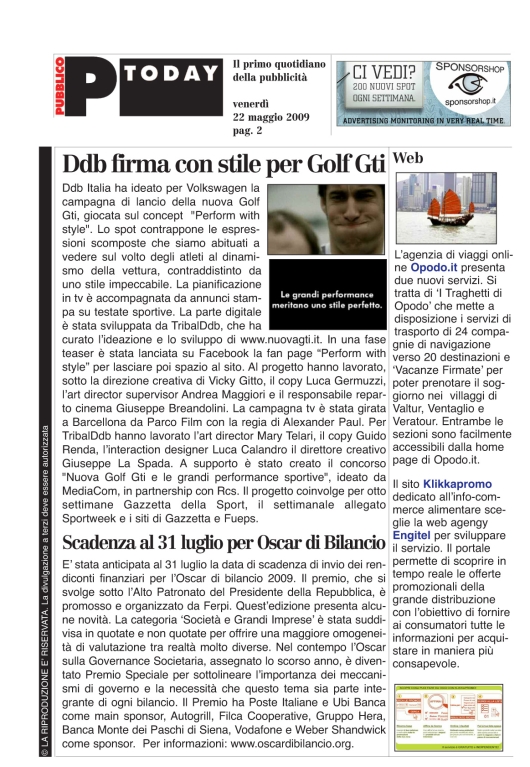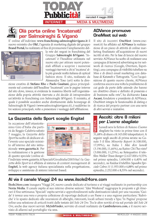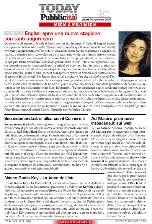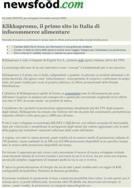 22/05/2009Il sito Klikkapromo dedicato all'info-commerce alimentare sceglie la web agency Engitel per sviluppare il servizioPubblico Today
