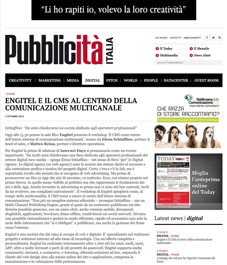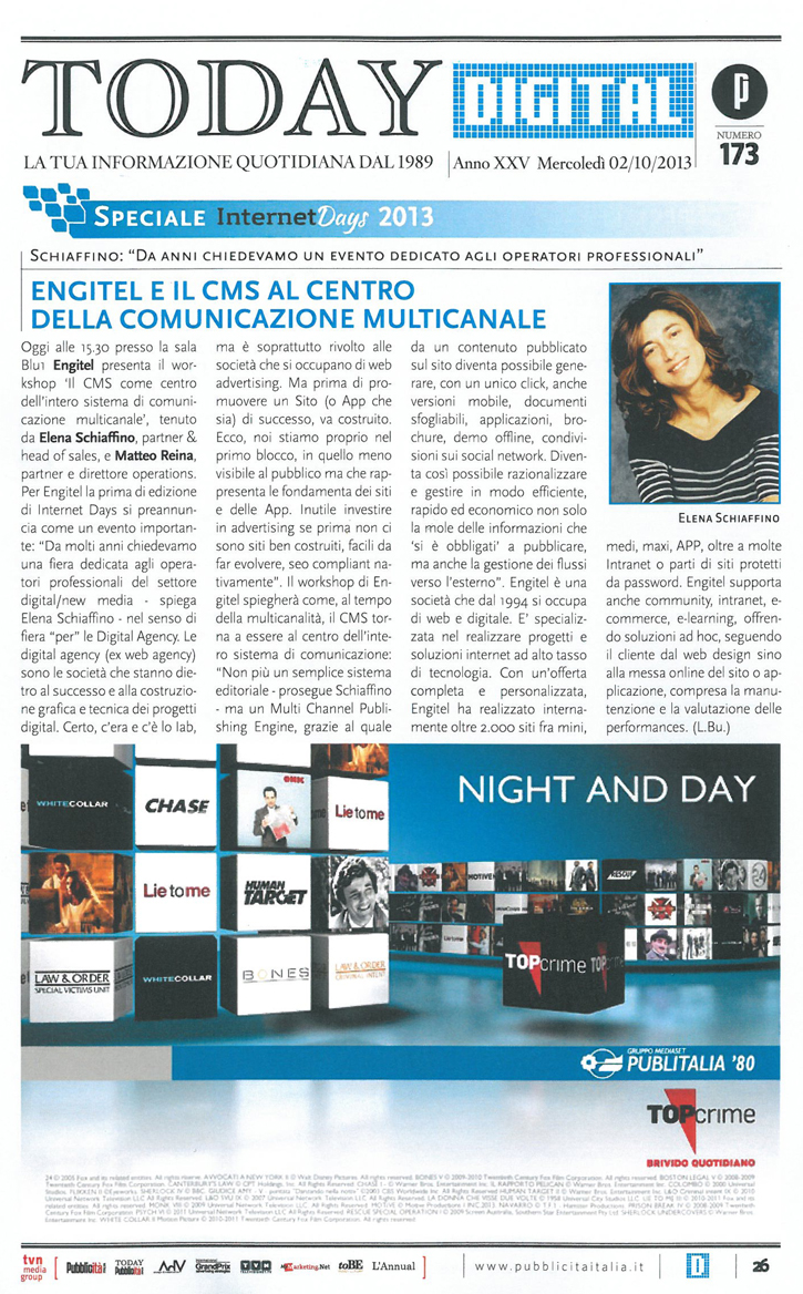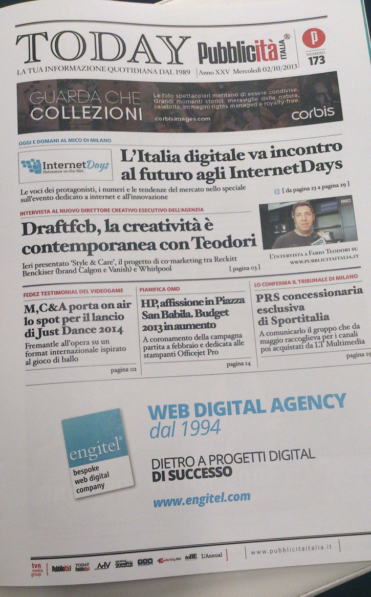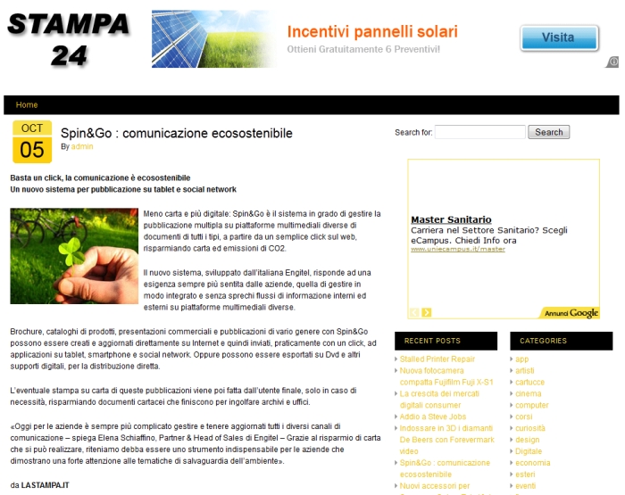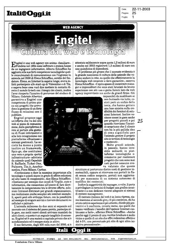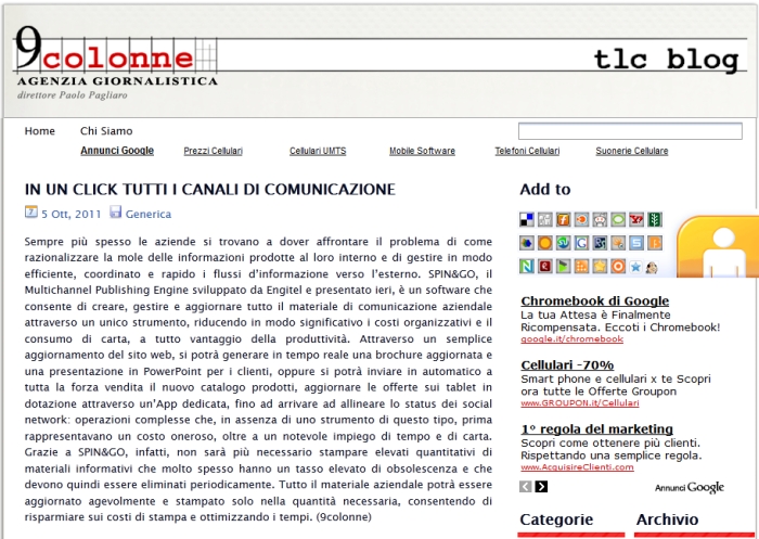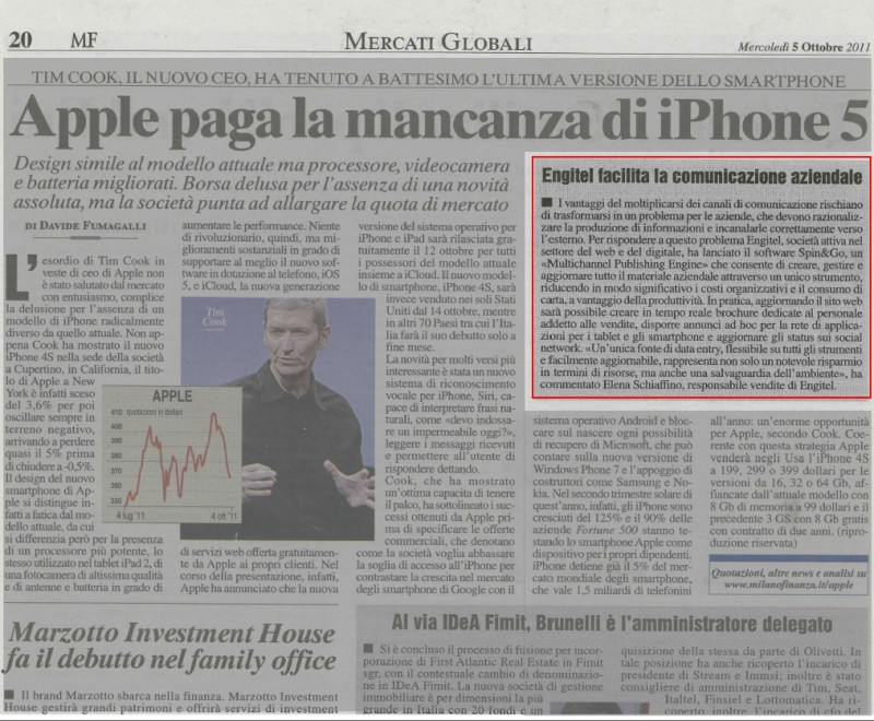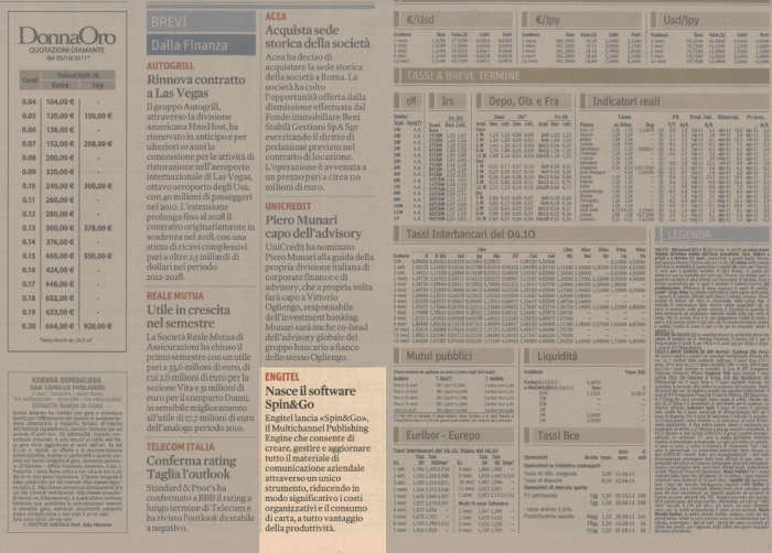 06/10/2011Da Engitel arriva "Spin&Go", un software che consente di creare, gestire e aggiornare tutto il materiale di comunicazione aziendale attraverso un unico strumentoCorriere della Sera