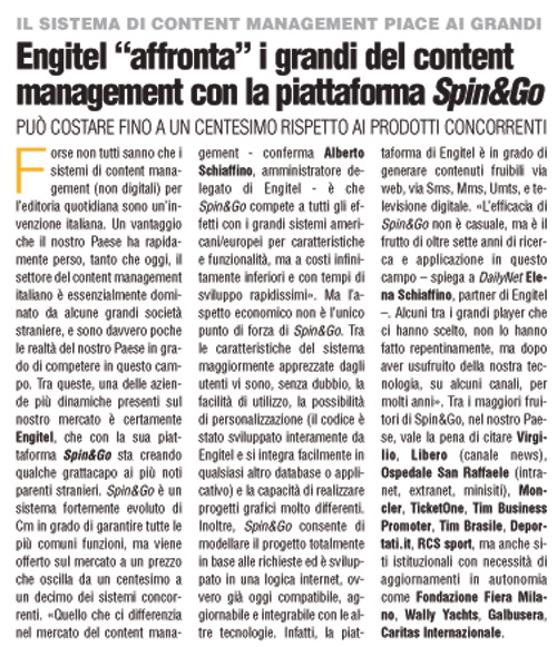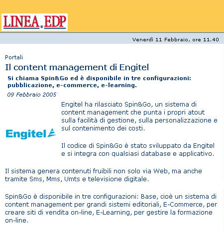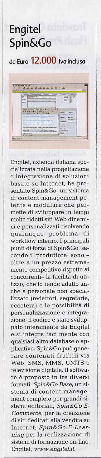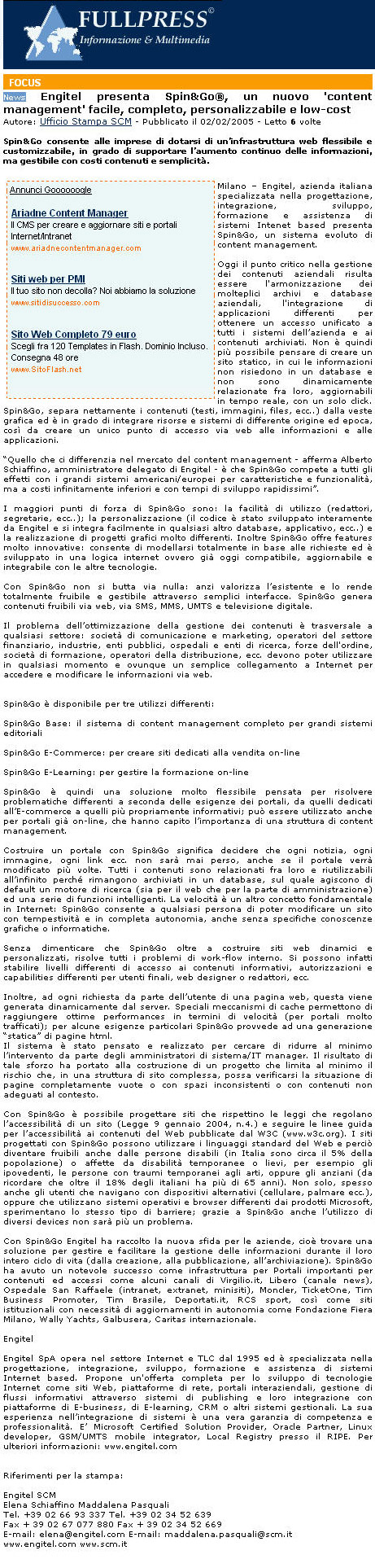 02/02/2005Engitel presenta Spin&Go, un nuovo 'content management' facile, completo, personalizzabile e low-costFullpress