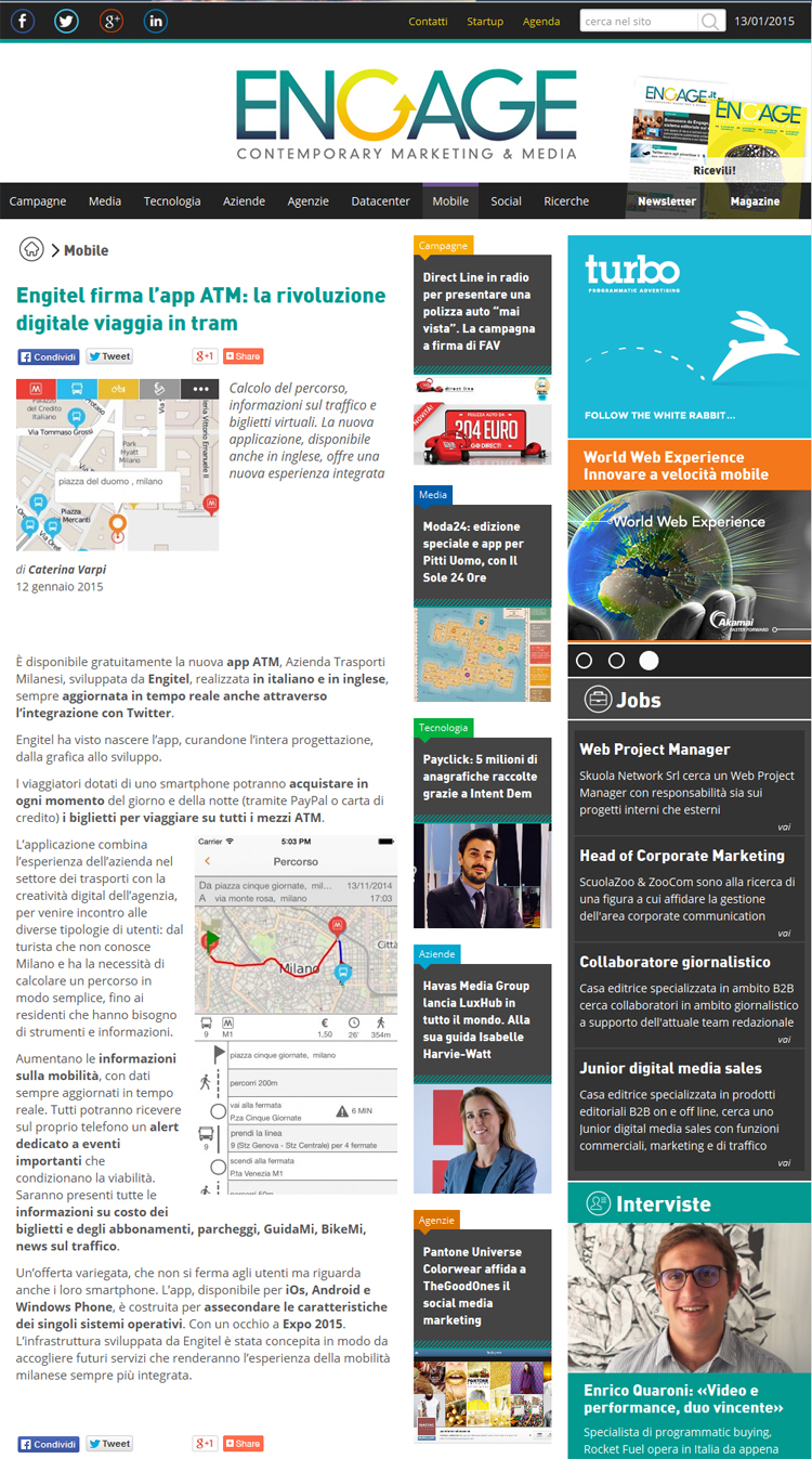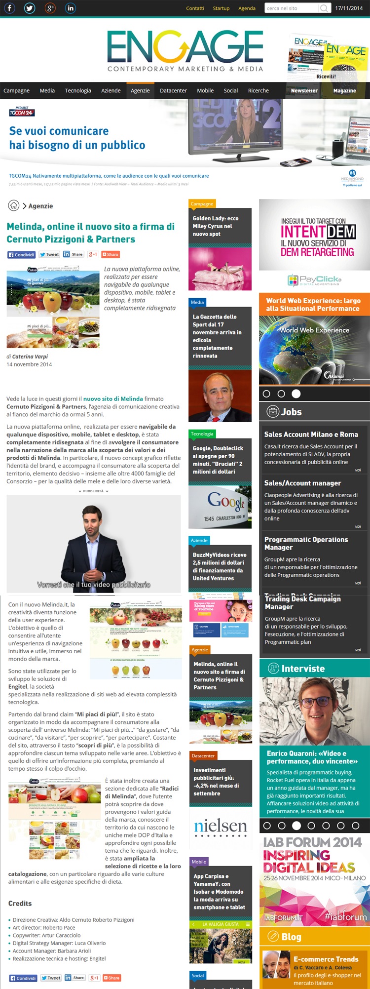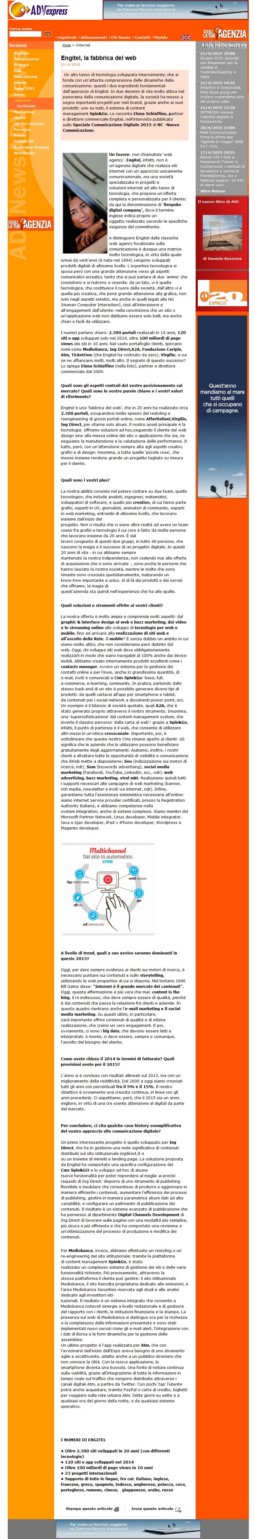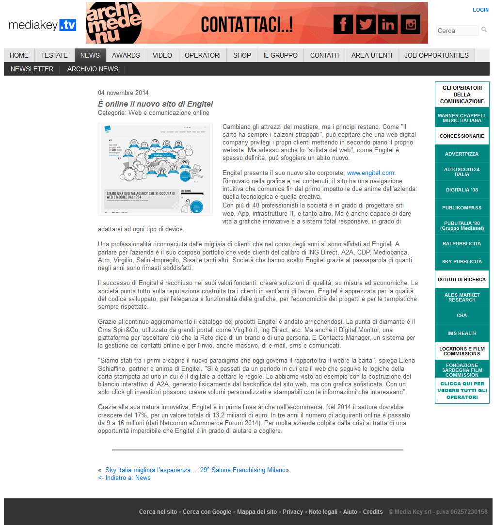 30/11/2016Engitel è Miglior Agenzia Digitale indipendente agli NC Digital Awards 2016. Schiaffino: "Grande soddisfazione per questo tributo all'impegno quotidiano del team nel dare vita a progetti complessi anche per brand internazionali"ADC Group