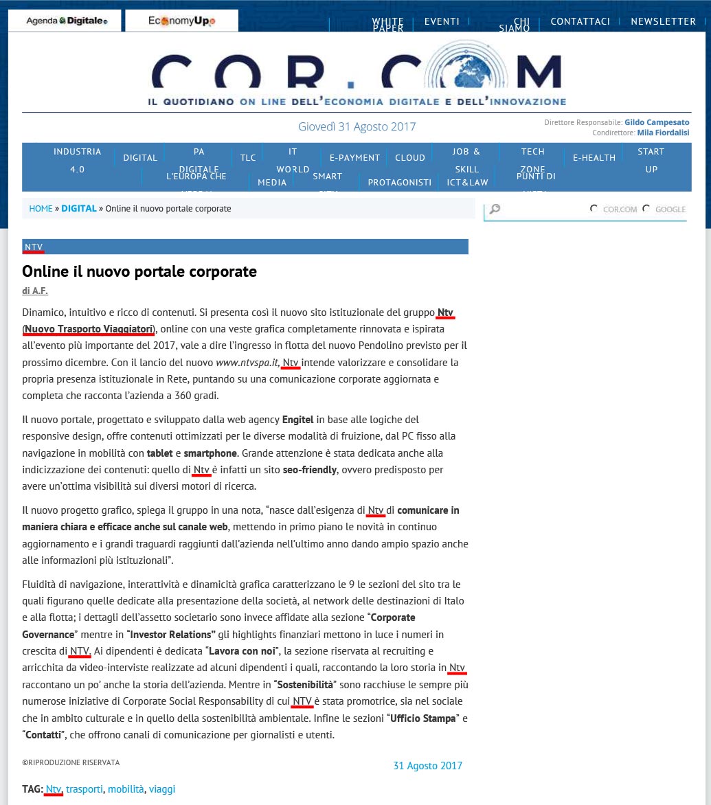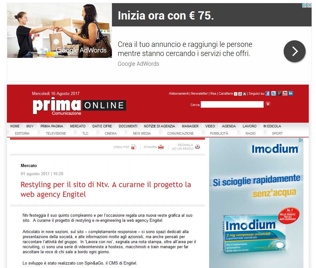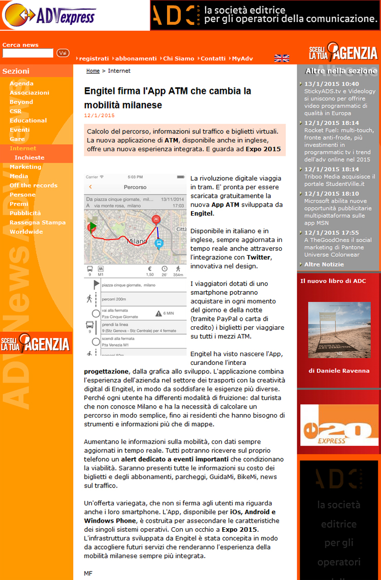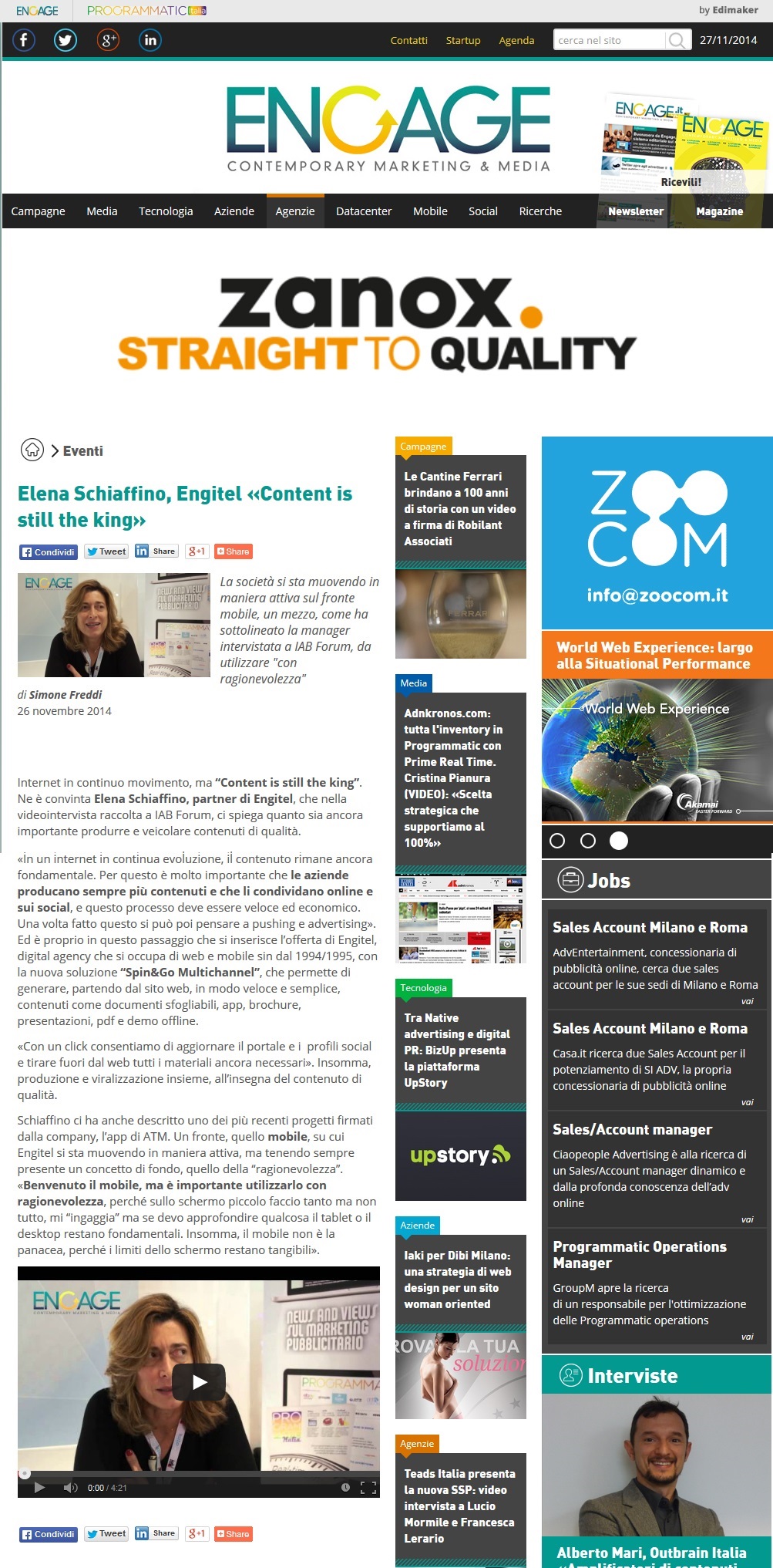 30/11/2016Engitel è Miglior Agenzia Digitale indipendente agli NC Digital Awards 2016. Schiaffino: "Grande soddisfazione per questo tributo all'impegno quotidiano del team nel dare vita a progetti complessi anche per brand internazionali"ADC Group