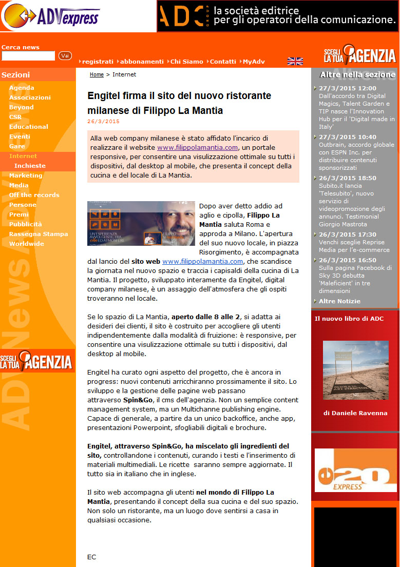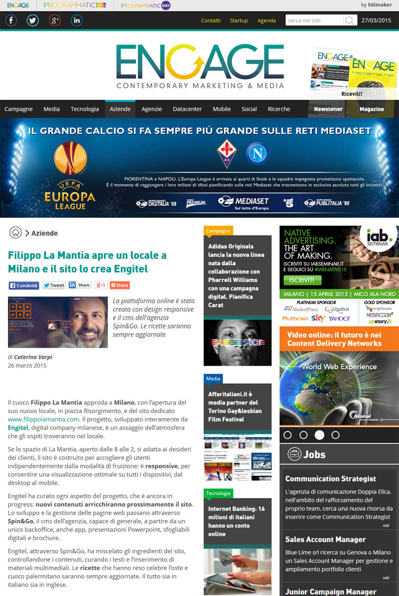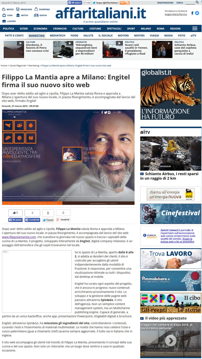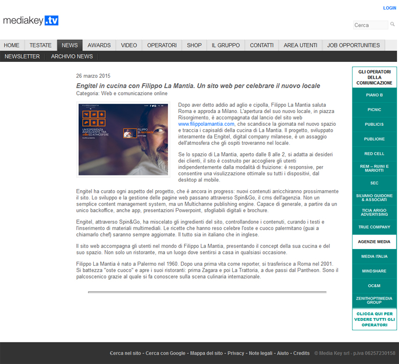 26/03/2015Engitel in cucina con Filippo La Mantia. Un sito web per celebrare il nuovo localeMedia Key