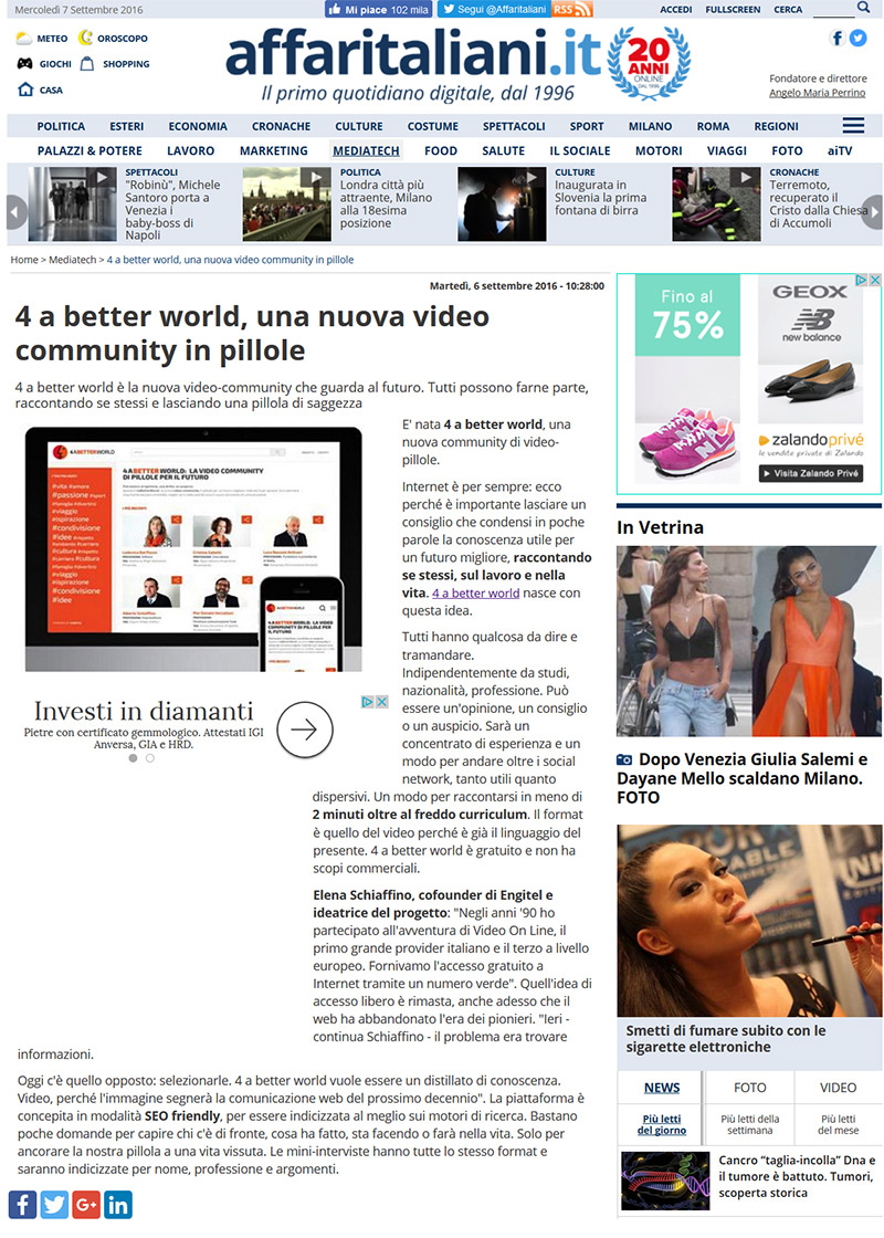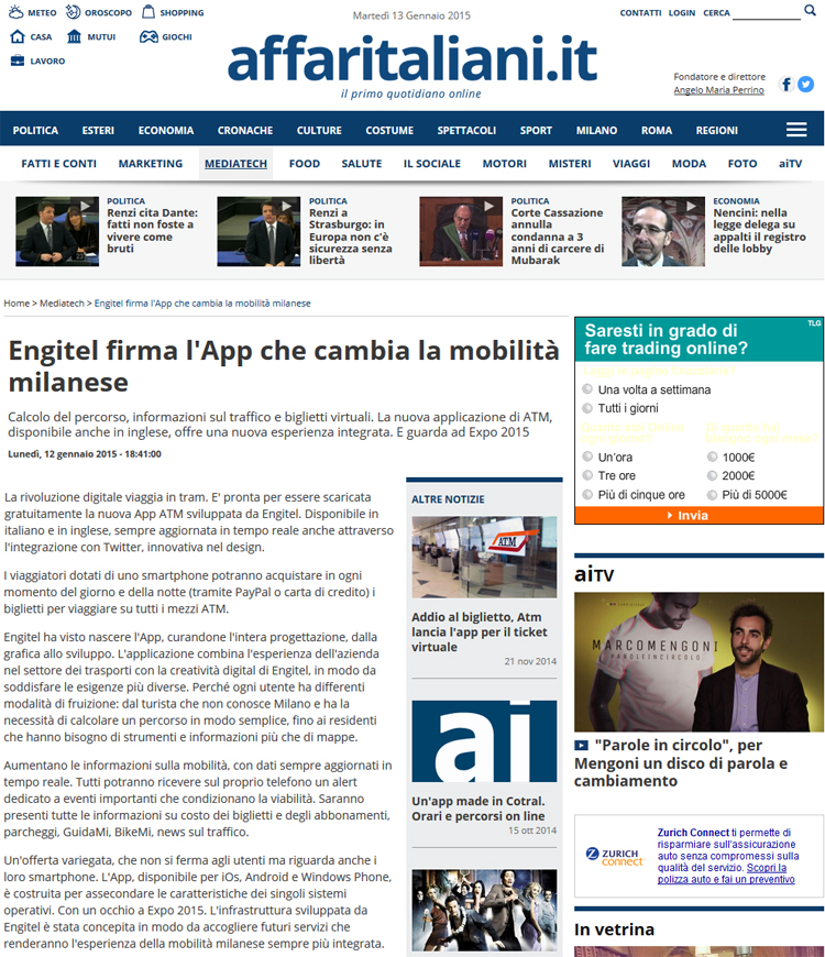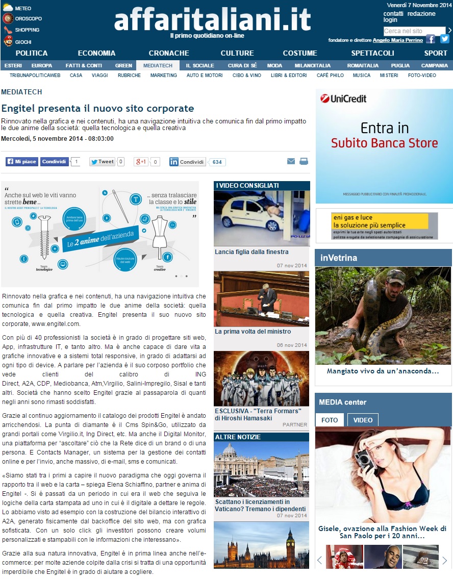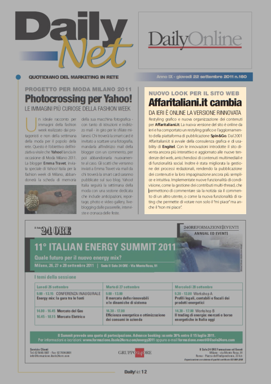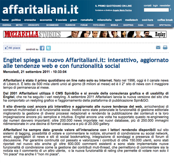 22/09/2011Engitel spiega il nuovo Affaritaliani.it: interattivo, aggiornato alle tendenze web e con funzionalità socialAffaritaliani.it