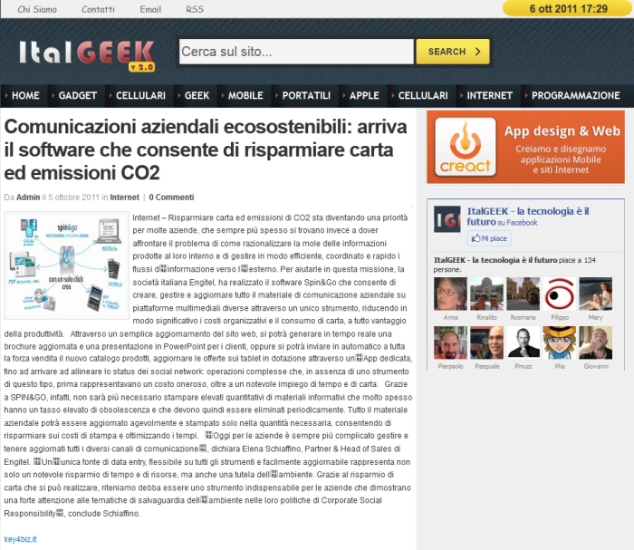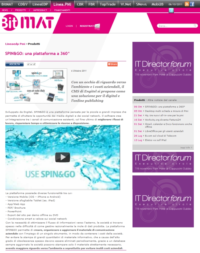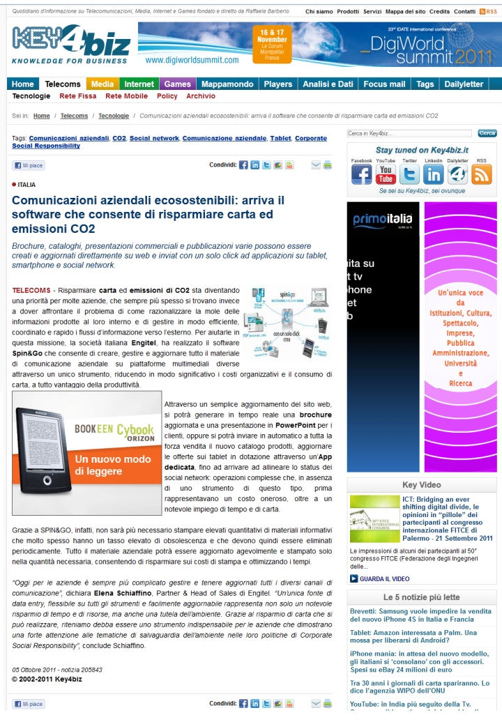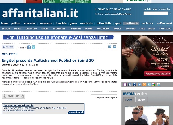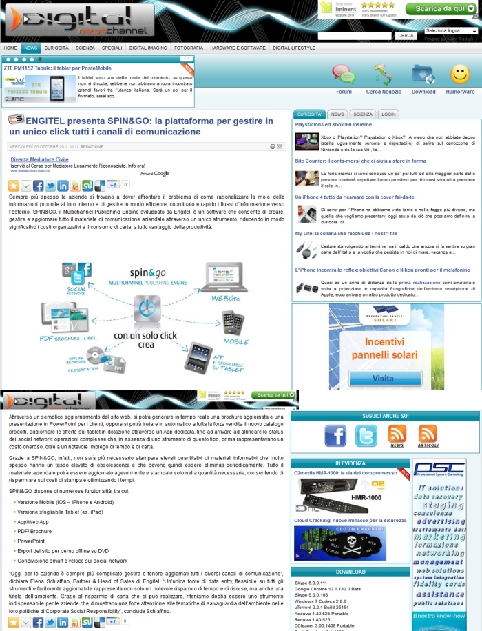 06/10/2011Engitel presenta Spin&Go: la piattaforma per gestire in un unico click tutti i canali di comunicazioneDigital News Channel
