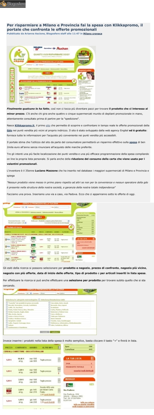 22/05/2009Per risparmiare a Milano e Provincia fai la spesa con Klikkapromo, il portale che confronta le offerte promozionaliBlogosfere