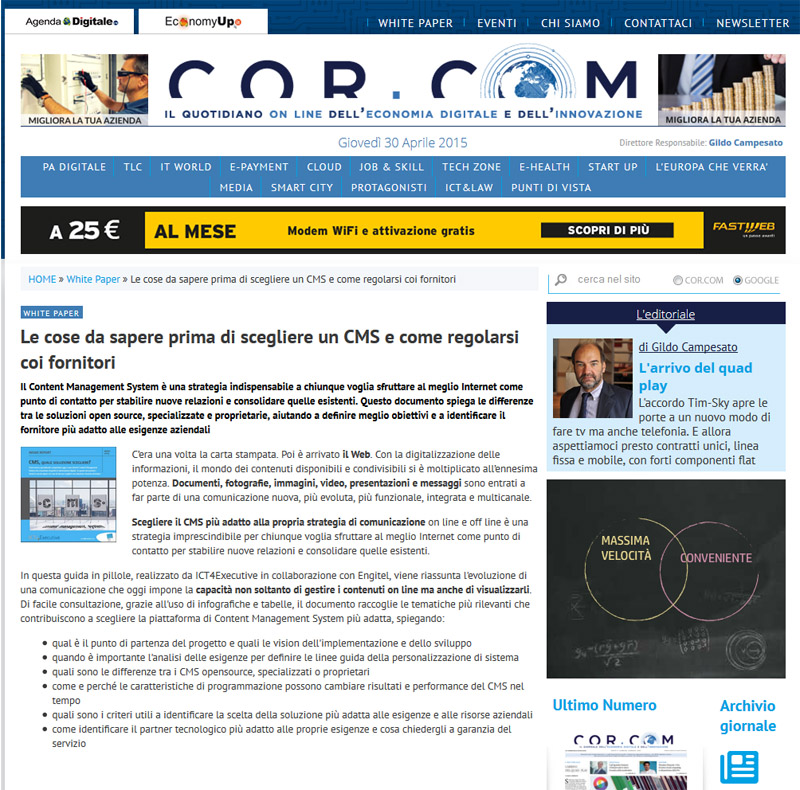30/04/2015Le cose da sapere prima di scegliere un CMS e come regolarsi coi fornitoriCorriereComunicazioni