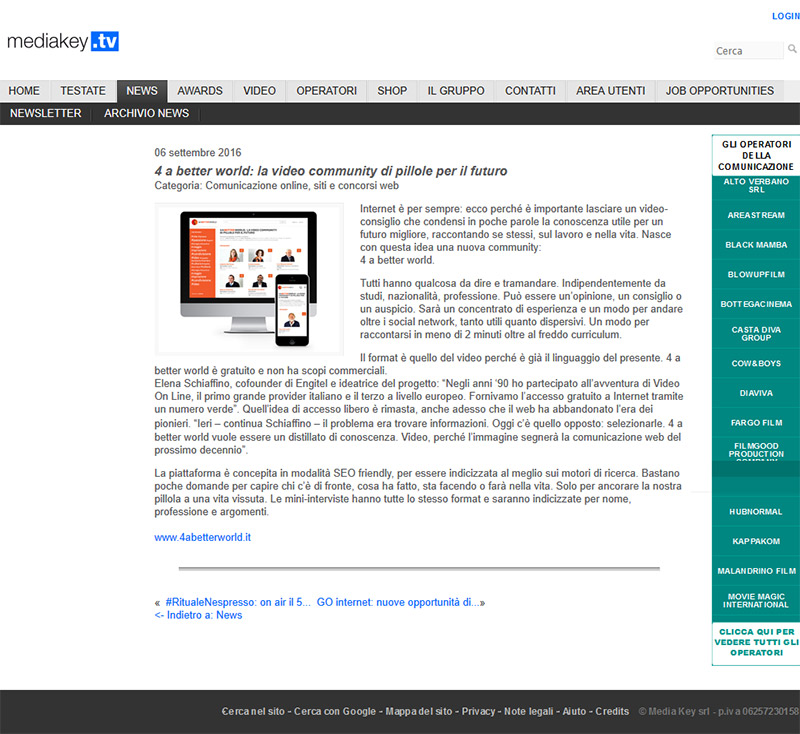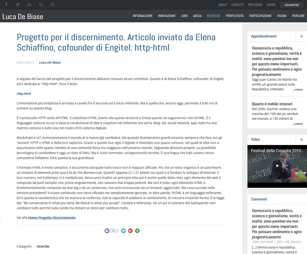 03/01/2017Progetto per il discernimento. Articolo inviato da Elena Schiaffino, cofounder di Engitel: http-htmlLuca De Biase