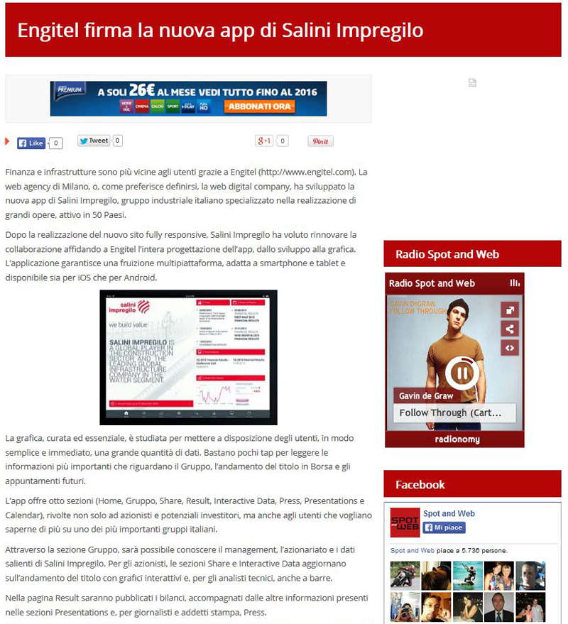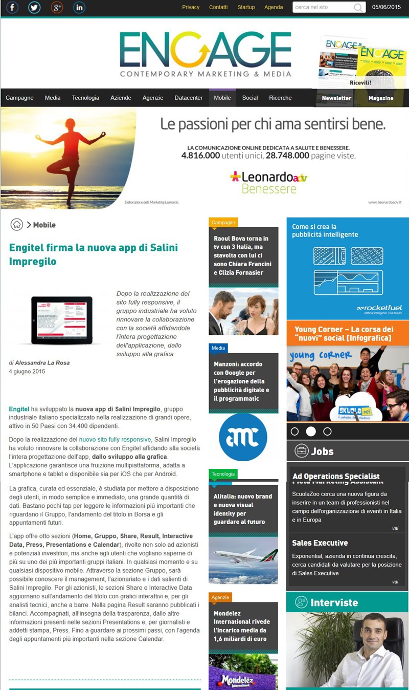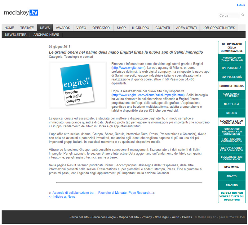 04/06/2015Le grandi opere nel palmo della mano Engitel firma la nuova app di Salini ImpregiloMedia Key