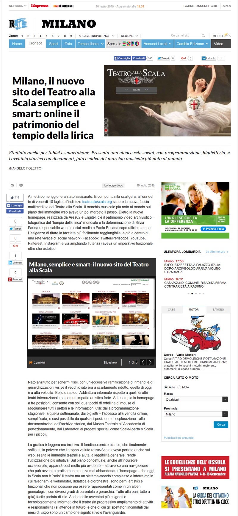 10/07/2015Milano, il nuovo sito del Teatro alla Scala semplice e smart: online il patrimonio del tempio della liricaRepubblica.it - Milano